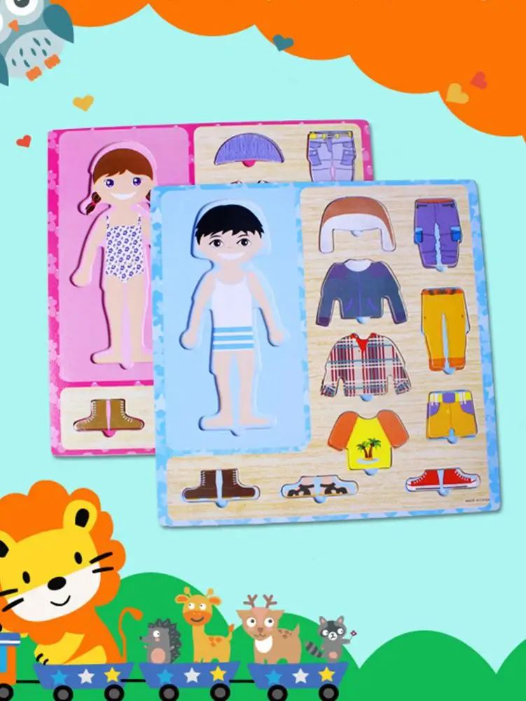 Addition Information of Baby Clothing Matching Puzzle Kids Wooden Toys Children Early Educational Figure Puzzle Games Baby