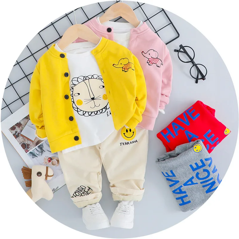 3 Pieces Baby Boy Clothes Set Infant Kids Zipper Jacket + T Shirt + Jeans Child Costume Children Clothing