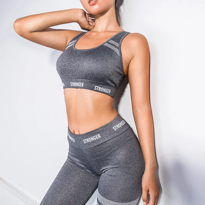 Best product Set Women Fitness Clothing Sportswear Woman Gym Leggings Padded Push-up Letter Stripe Printed Sport