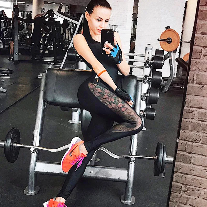 2019 Woman Sportswear Yoga Set Mesh Patchwork Black Sport suit Jumpsuit Fitness clothing sports wear for women gym clothing