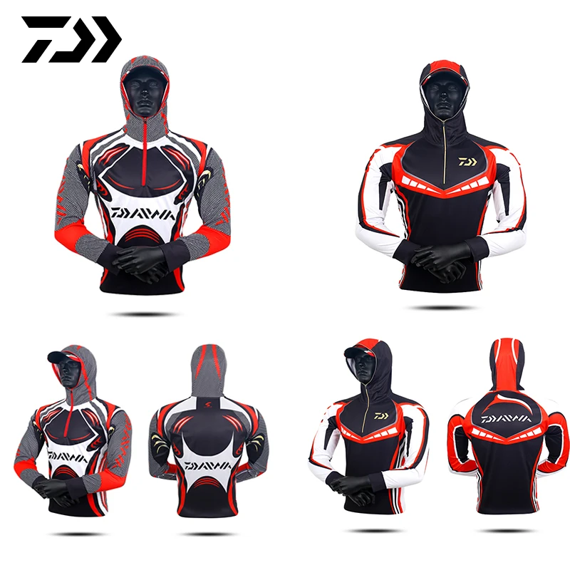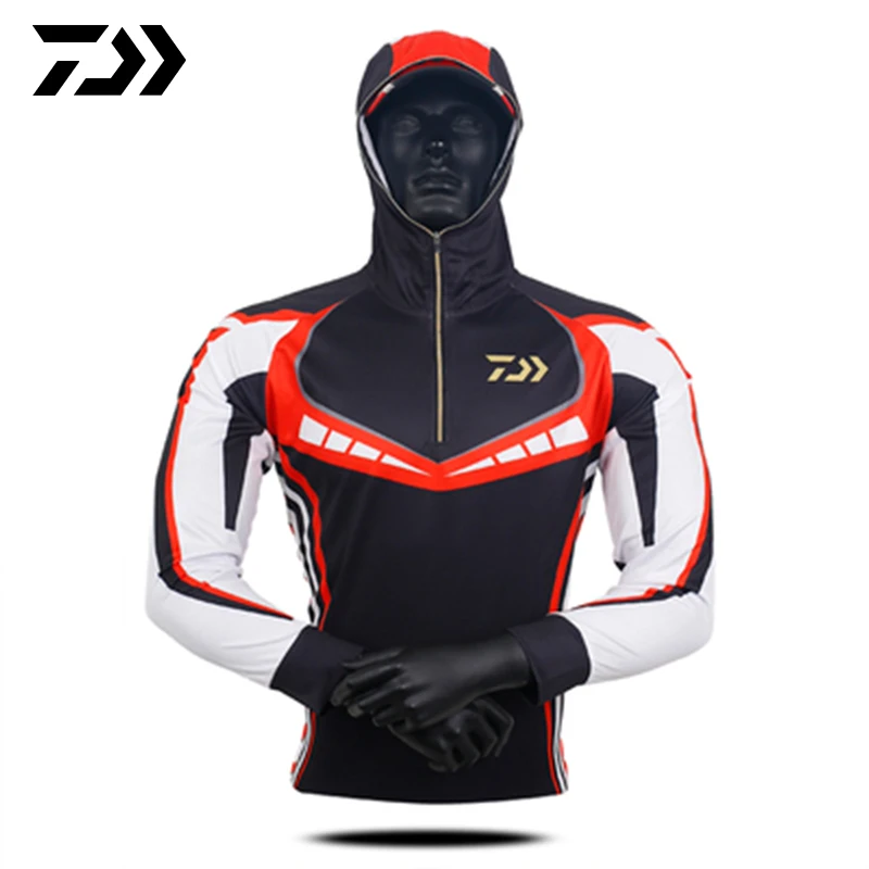 Daiwa Men Fishing Hoodie Sun Protection Full Sleeve Anti-Mosquito Outdoor Anti-UV Breathable Anti-sweat Quick Dry Fishing Shirt